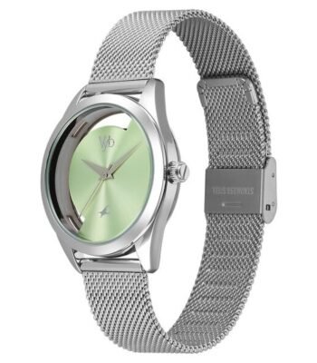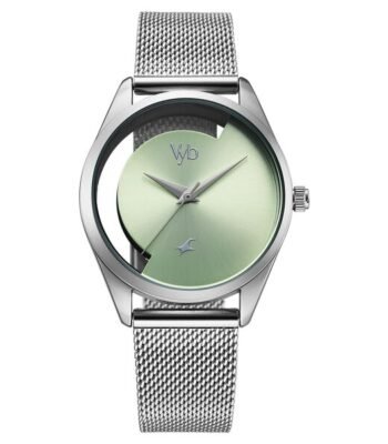 Vyb Runway By Fastrack Quartz Analog Green Dial Silver Stainless Steel Strap Watch For Girls