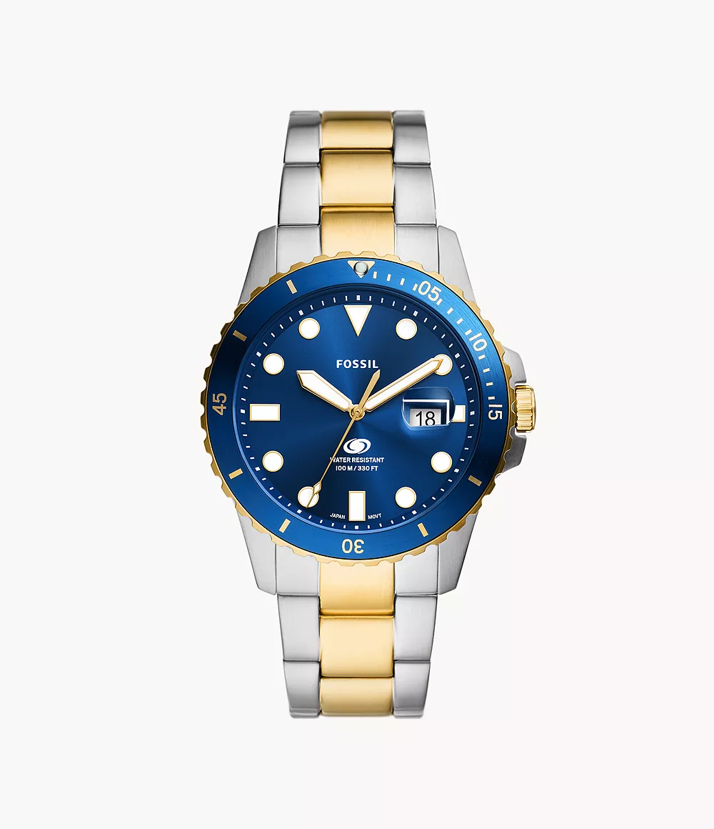 Fossil Blue GMT Rose Gold-Tone Stainless Steel Watch