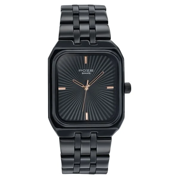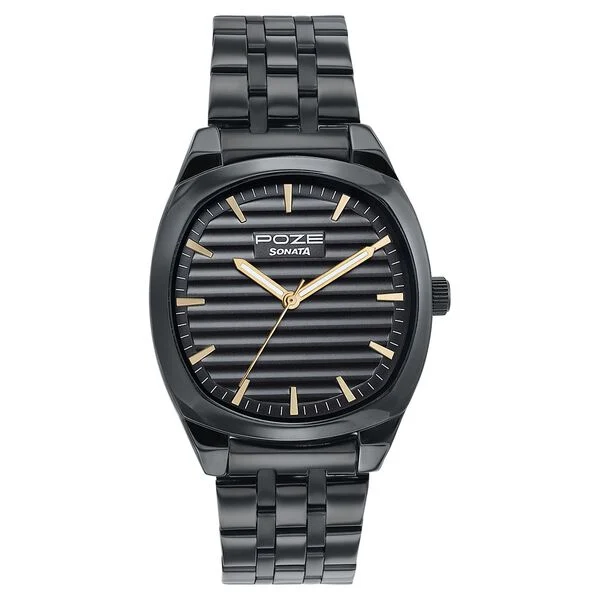 Poze By Sonata Quartz Analog Black Dial Black Metal Strap Watch For Men