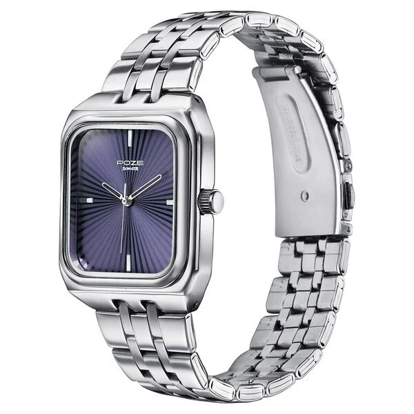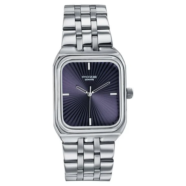 Poze By Sonata Quartz Analog Blue Dial Silver Metal Strap Watch For Men