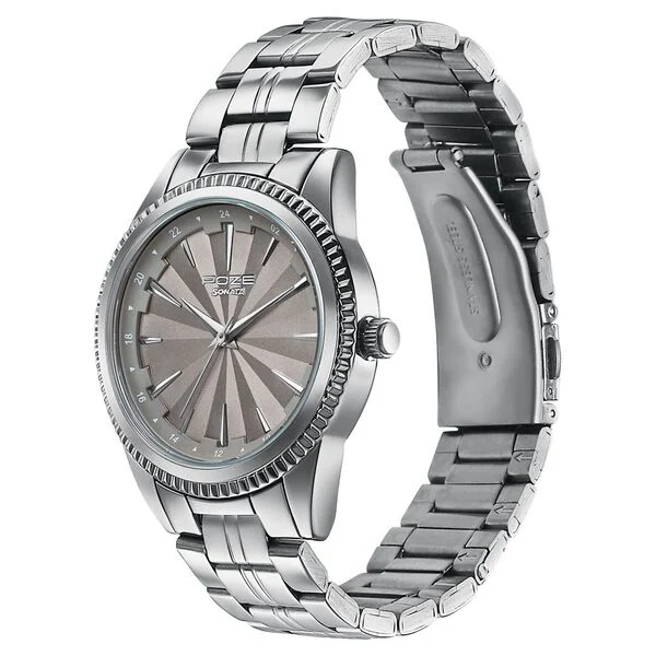 Poze By Sonata Quartz Analog Beige Dial Silver Metal Strap Watch For Men