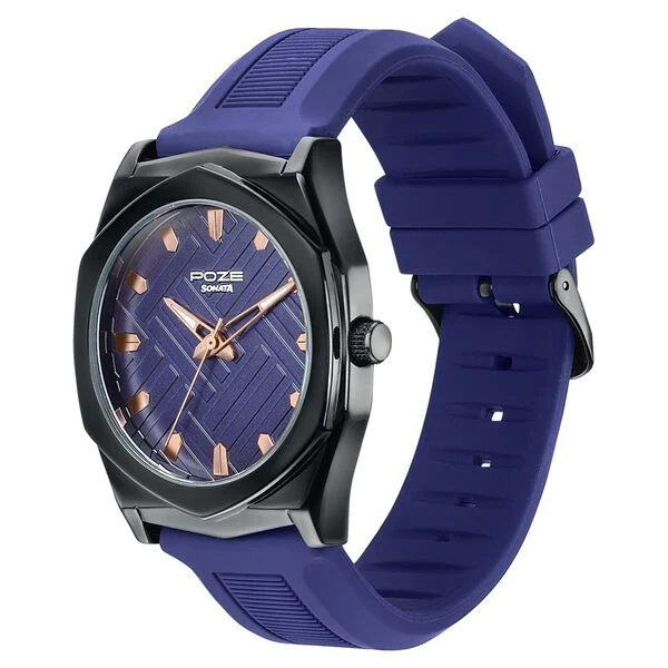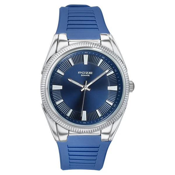 Poze By Sonata Quartz Analog Blue Dial Blue Silicone Strap Watch For Men