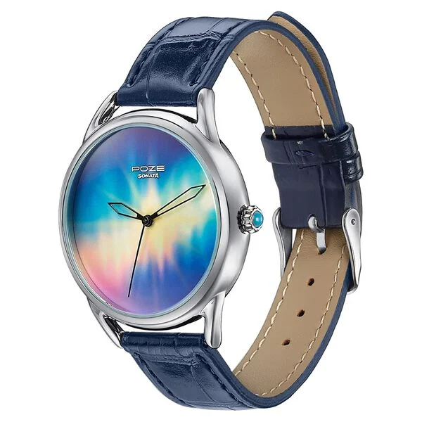 Poze By Sonata Quartz Analog Blue Dial Blue Leather Strap Watch For Men