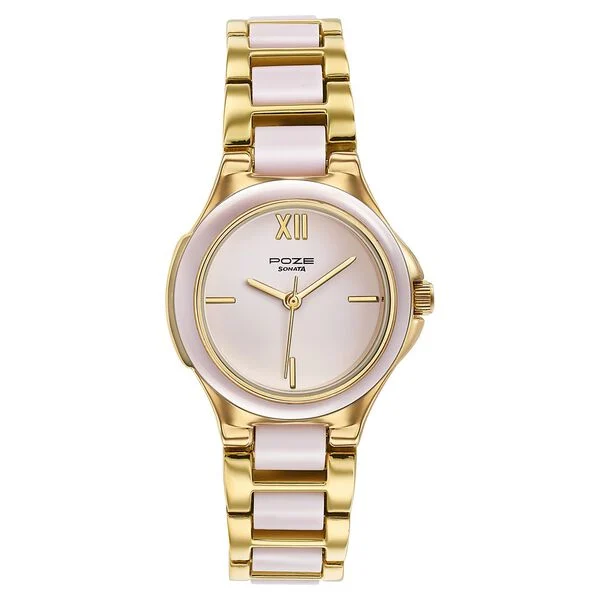 Poze By Sonata Quartz Analog Silver Dial Rose Gold Metal Strap Watch For WomenPoze By Sonata Quartz Analog Pink Dial Rose Gold Metal Strap Watch For Women