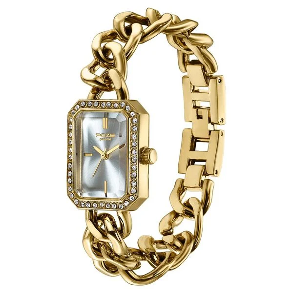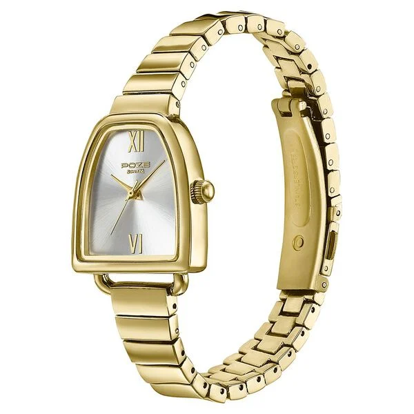 Poze By Sonata Quartz Analog Silver Dial Gold Metal Strap Watch For Women
