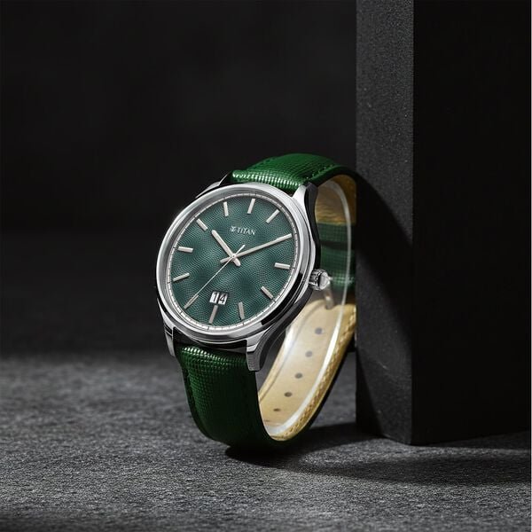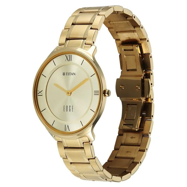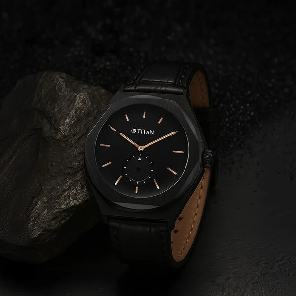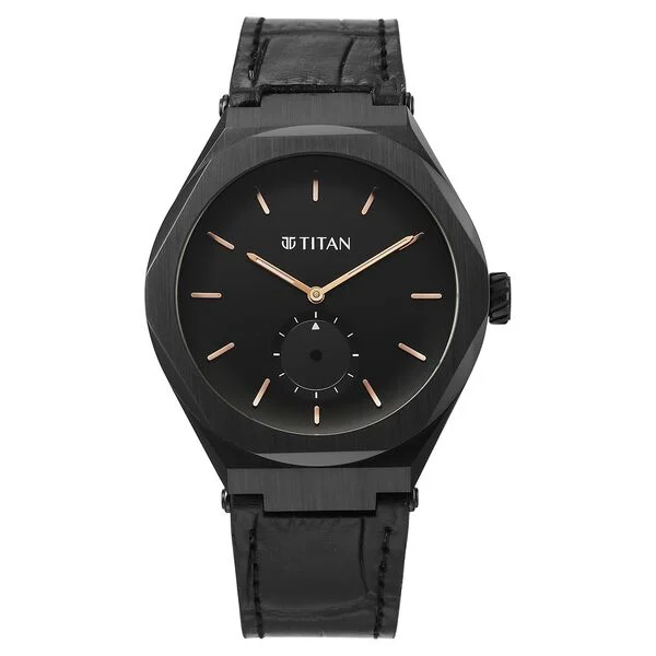 Titan Edge Black Dial Quartz Leather Strap Watch for Men