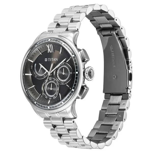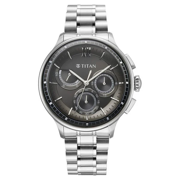 Titan Edge Anthracite Dial Quartz Stainless Steel Strap Watch for Men
