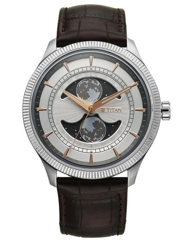Titan Quartz Analog with Day and Date Silver Dial Stainless Steel Strap Watch for Men