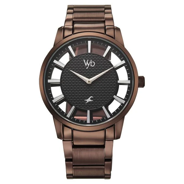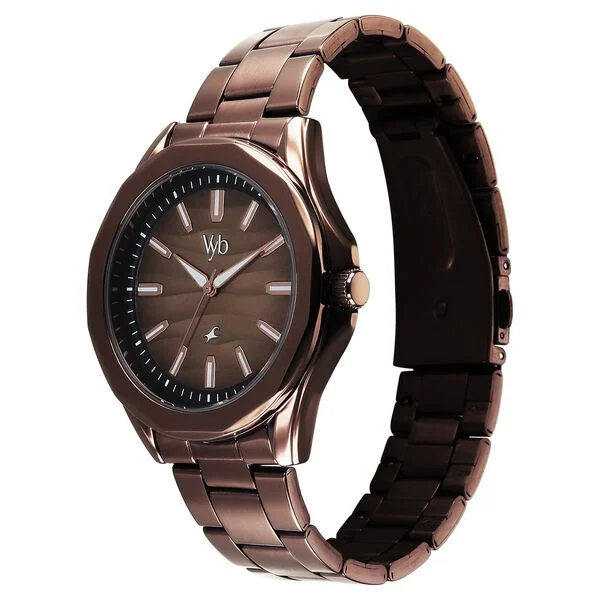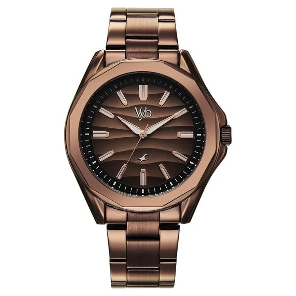 Vyb Hustler By Fastrack Quartz Analog Brown Dial Brown Metal Strap Watch For Guys