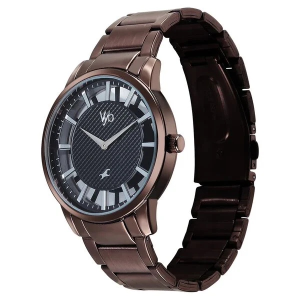 Vyb Horizon By Fastrack Quartz Analog Black Dial Brown Stainless Steel Strap Watch For Guys