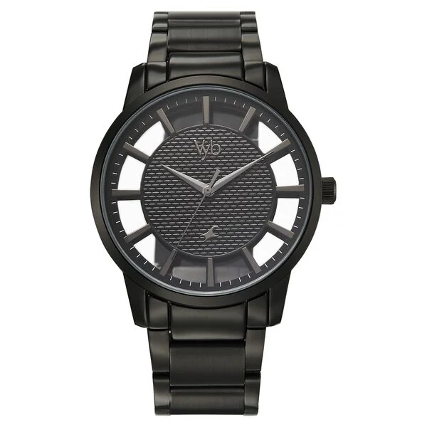 Vyb Horizon By Fastrack Quartz Analog Black Dial Black Stainless Steel Strap Watch For Guys