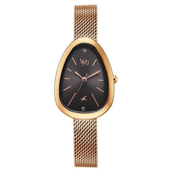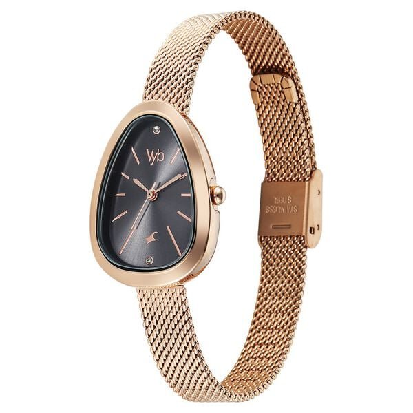 Vyb Prodigy By Fastrack Quartz Analog Grey Dial Rose Gold Stainless Steel Strap Watch For Girls