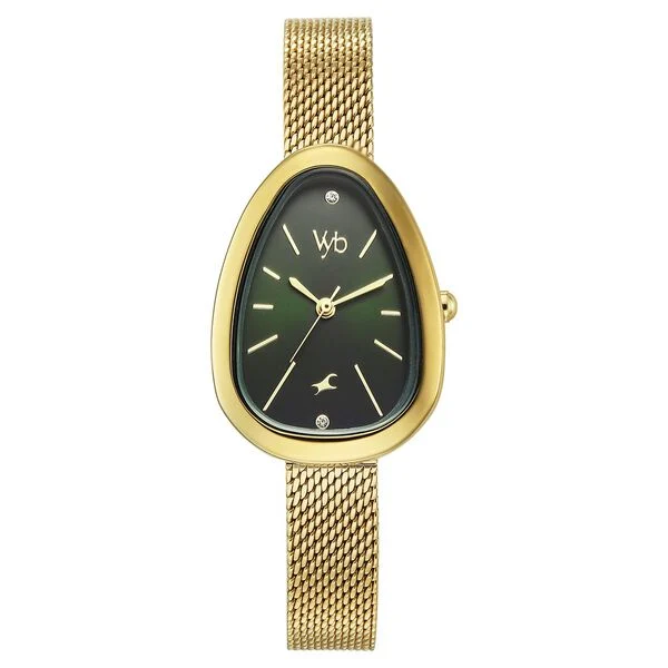 Vyb Prodigy By Fastrack Quartz Analog Green Dial Golden Stainless Steel Strap Watch For Girls
