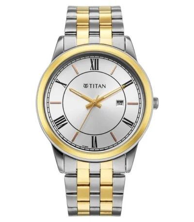 Titan Karishma Festive Analog with Silver Dial Dual Tone Stainless Steel Strap Watch for Men