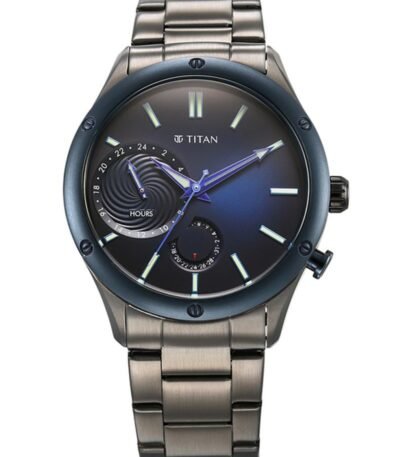 Titan Stellar Multifunction Blue Dial Grey Stainless Steel Strap Watch For Men