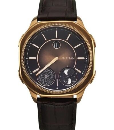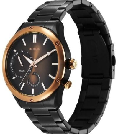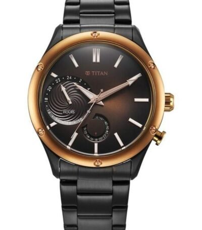 Titan Stellar Multifunction Brown Dial Black Stainless Steel Strap Watch For Men
