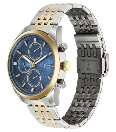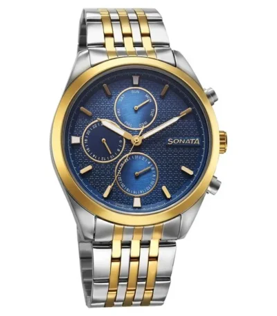 Sonata Magna Quartz Multifunction Blue Dial Two Toned Stainless Steel Strap Watch For Men