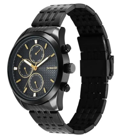 Sonata Magna Quartz Multifunction Black Dial Black Stainless Steel Strap Watch For Men