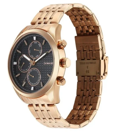 Sonata Magna Quartz Multifunction Black Dial Rose Gold Stainless Steel Strap Watch For Men