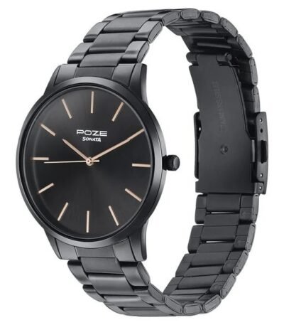 Sonata Poze Quartz Analog Black Dial Black Color Stainless Steel Strap Watch For Men