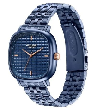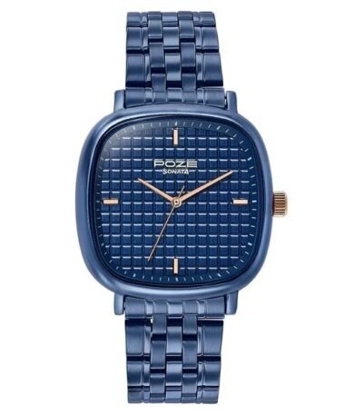 Sonata Poze Quartz Analog Blue Dial Blue Colour Stainless Steel Strap Watch For Men