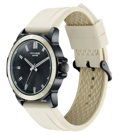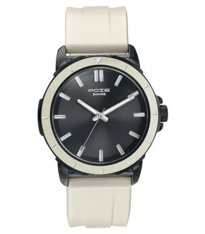 Sonata Poze Quartz Analog Black Dial Beige Silicone Strap Watch For Men