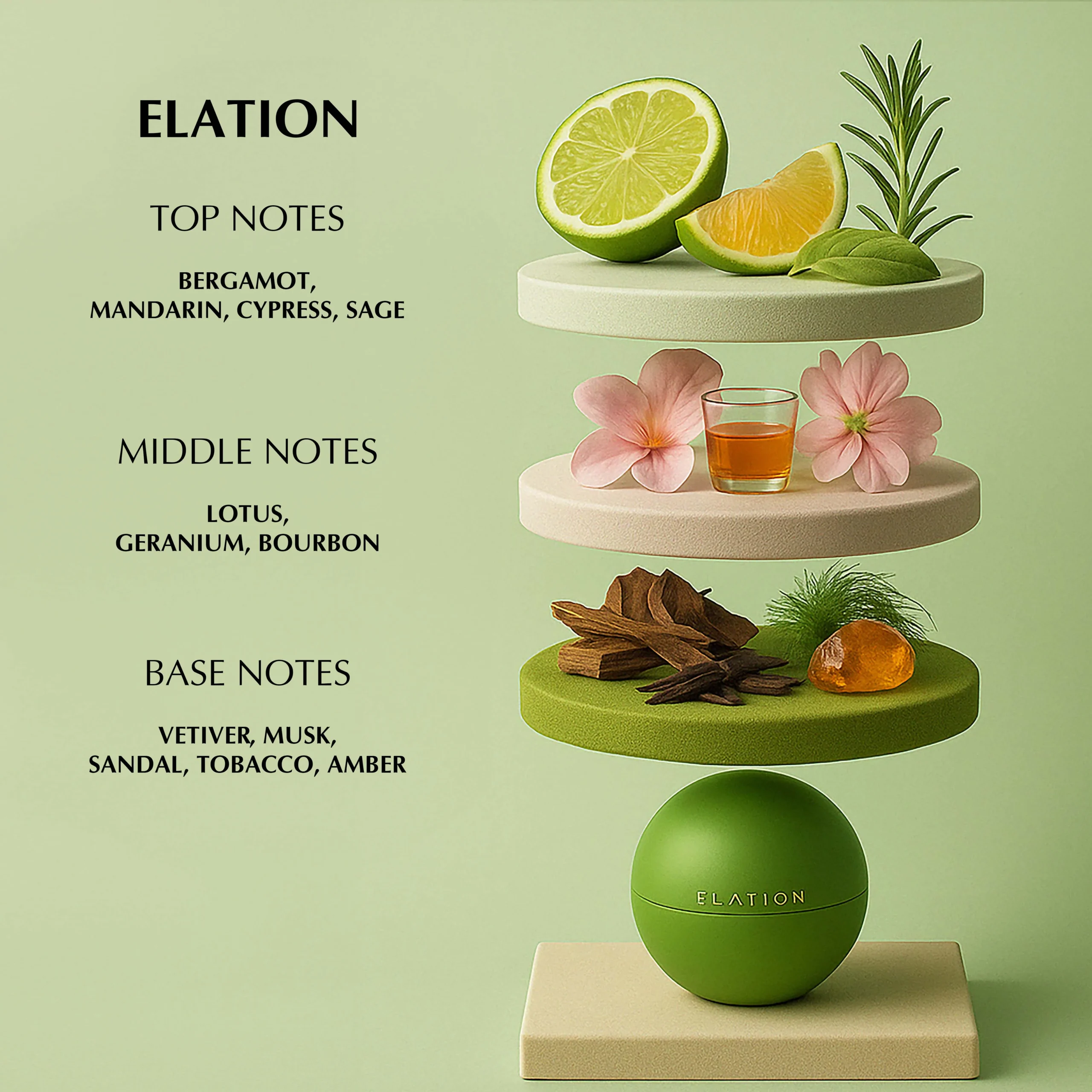 ELATION is designed for men who enjoy citrus-aqua fragrances with a warm, sophisticated finish. Versatile and elegant, it is well suited for everyday wear, relaxed evenings, and moments that call for a calm yet confident presence.