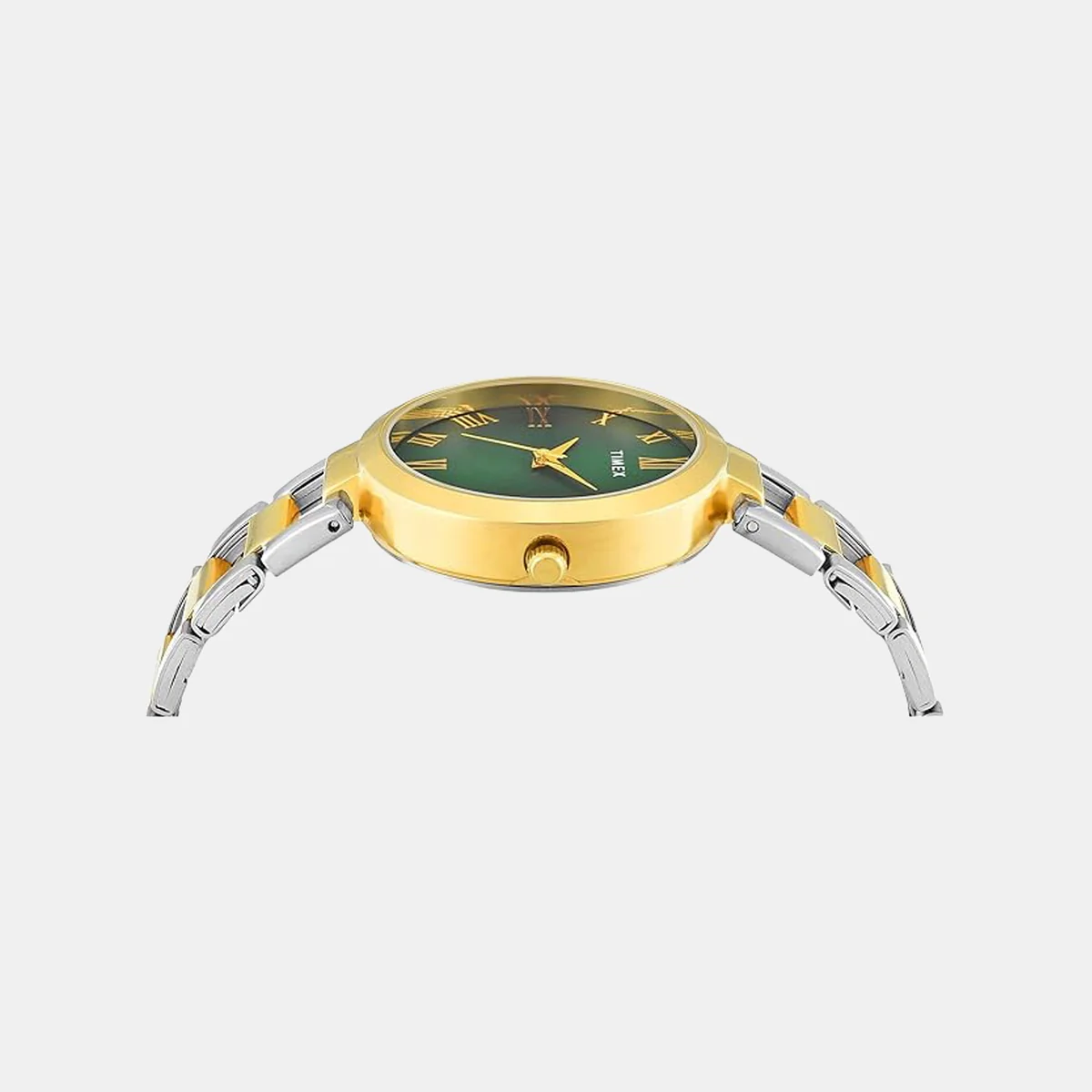 Experience timeless craftsmanship with the TIMEX Watch for Women Analog, a true classic among water resistant watches for woman Analog. Designed with a bold 35mm Green dial and a stylish Two Tone Stainless Steel this Women’s watches model combines modern edge with vintage charm. Built for everyday wear, its Brass case ensures durability, while the 30 m water resistance makes it suitable for daily splashes and unexpected weather. The Analog watch for woman runs on reliable Quartz movement, offering precise timekeeping that suits both casual outings and formal occasions.