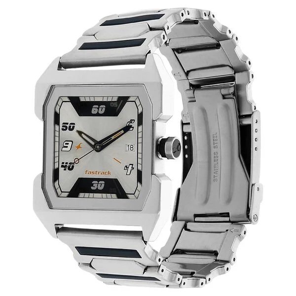 Fastrack Quartz Analog Silver Dial Stainless Steel Strap Watch for Guys