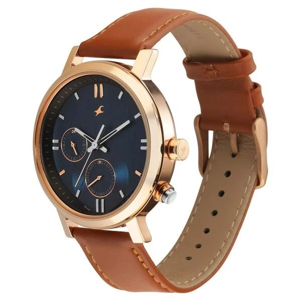 Fastrack Tick Tock Quartz Analog Blue dial Leather Strap Watch for Guys