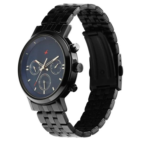 Command attention with the bold and modern Fastrack Tick Tock Watch. Featuring a deep blue dial housed in a rugged black case, this watch brings multifunction utility with day, date, and 24-hour subdials. The stainless steel black strap adds a sleek, masculine touch, while the red tipped second hand pops with style. Whether it’s for daily wear or casual outings, this timepiece blends sporty aesthetics with youthful attitude.