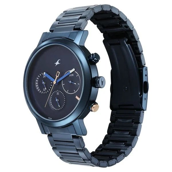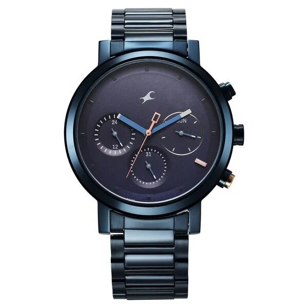 Fastrack Tick Tock Quartz Analog Blue Dial With Blue Stainless steel Strap Watch for Guys