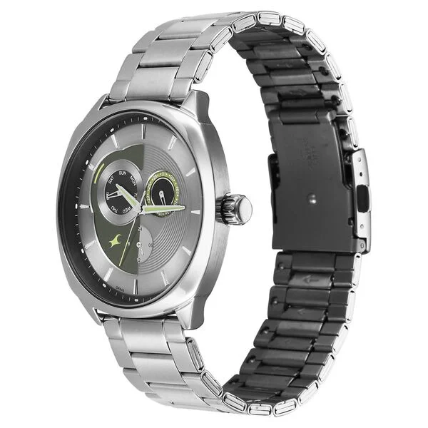 Fastrack Tick Tock Quartz Multifunction Silver Dial Stainless Steel Strap Watch For Guys
