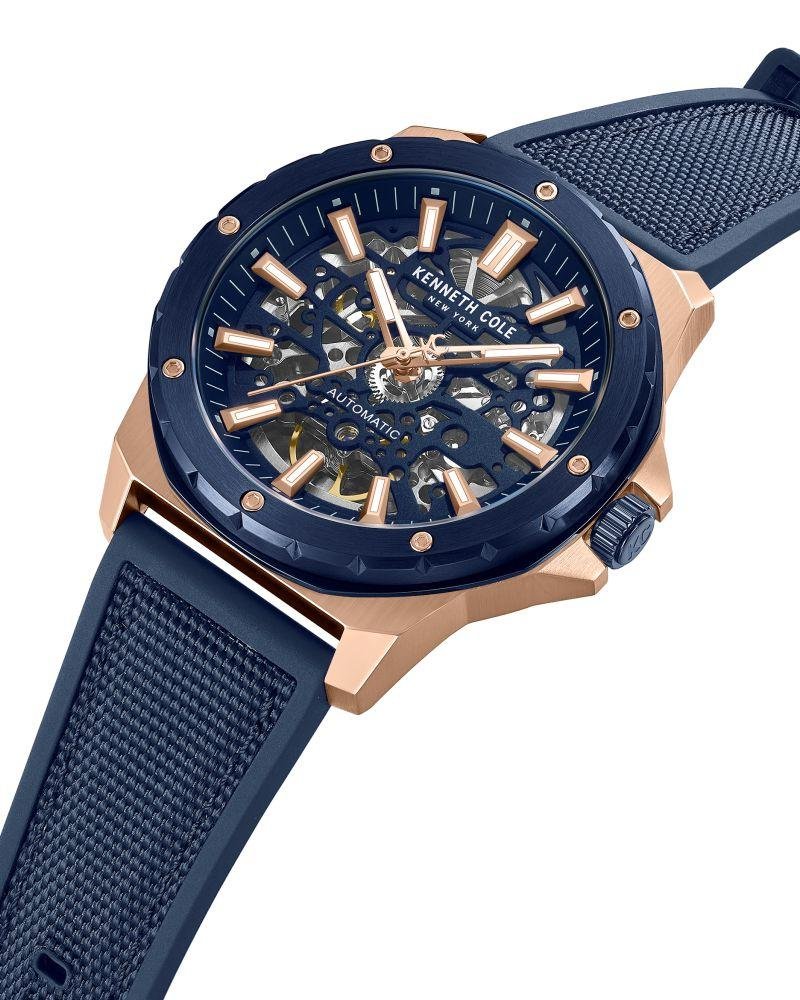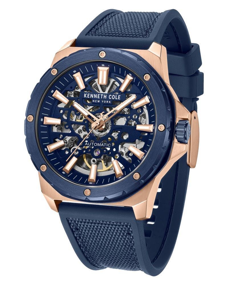 Designed with bold urban energy, this Kenneth Cole watch channels modern New York attitude. Model KCWGZ0076702MN pairs design nuance with everyday practicality. A 45 mm round case crafted in stainless steel sets a refined foundation, measuring 14 mm in thickness. Its blue dial elevates the aesthetic with balanced readability A hardened mineral crystal offers everyday durability. The automatic movement delivers smooth, self?winding performance. With 50 m water resistance, it handles daily splashes and light rain with ease. The blue silicon strap/bracelet rounds off the design with everyday ease. Proportions suit men wrists with a bold footprint. Backed by a 24 months warranty for added assurance. A fashion?forward essential that elevates daily fits with ease.