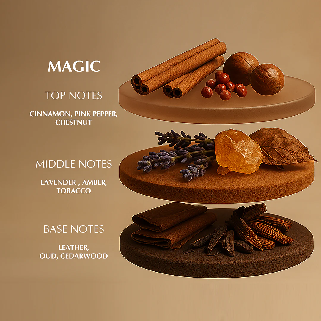 MAGIC Deodorant for men is crafted for everyday confidence, where classic masculinity meets modern freshness. Designed for men who prefer rich, refined scents, this deodorant delivers long-lasting freshness with a warm, spicy-oud character that feels confident and composed.