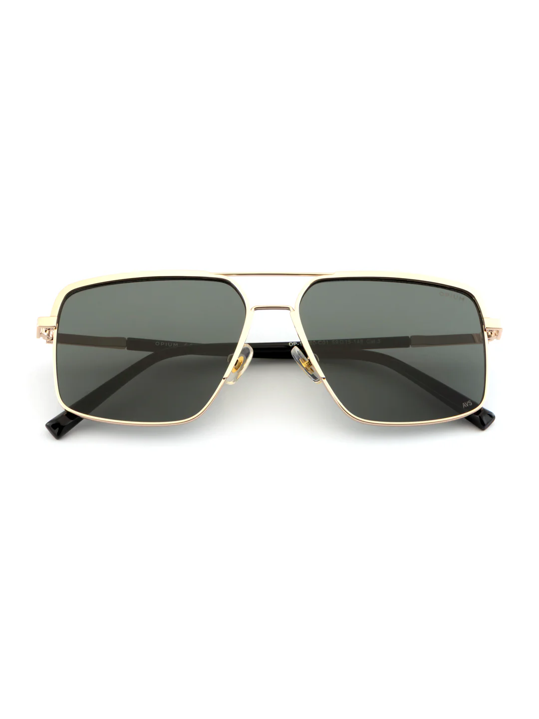 Enhance your style with the Opium Navigator Sunglasses. Designed with a metal frame in gold finish and green lenses featuring Uv Protection, these sunglasses are perfect for men seeking both fashion and eye protection.