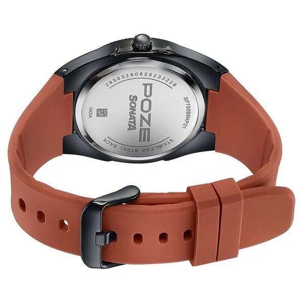 Poze By Sonata Quartz Analog Orange Dial Orange Silicone Strap Watch For Men