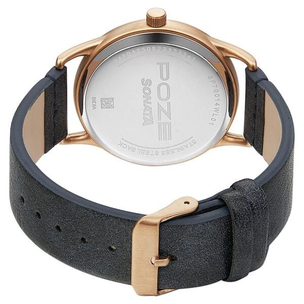 SP70014WL01 refers to a Sonata Poze Analog Watch for Men, featuring a quartz movement, round metal case, mineral glass, and a PU leather strap, often with a silver dial and a blue strap. It’s a casual watch known for its affordability, with details like a 30-meter water resistance and a buckle closure,
