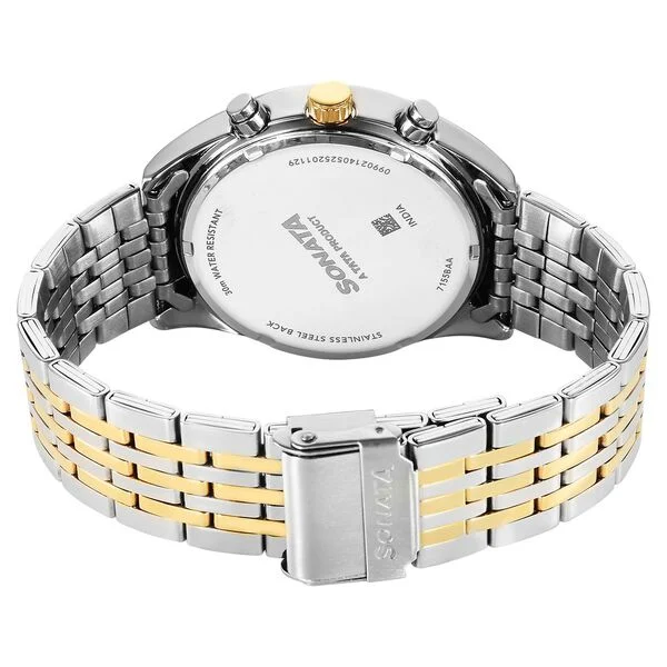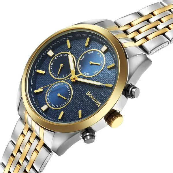 Sonata Magna Quartz Multifunction Blue Dial Two Toned Stainless Steel Strap Watch For Men