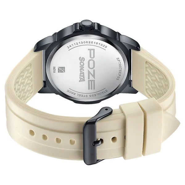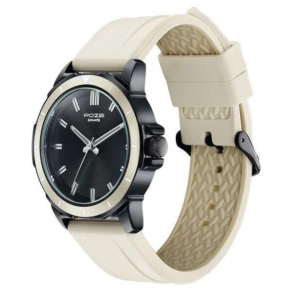 Sonata Poze Quartz Analog Black Dial Beige Silicone Strap Watch For Men