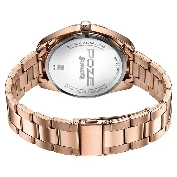 Sonata Poze Quartz Analog Blue Dial Rose Gold Colour Stainless Steel Strap Watch For Men