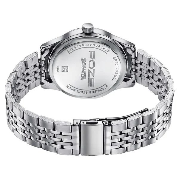 Sonata Poze Quartz Analog Blue Dial Silver Colour Stainless Steel Strap Watch For Men