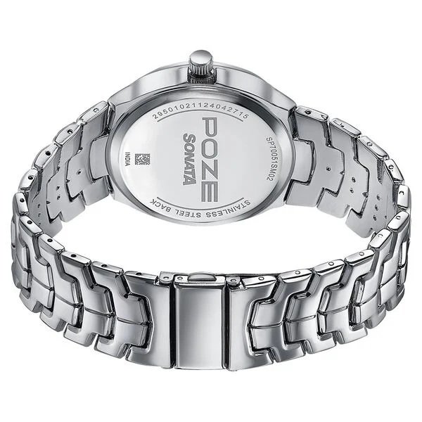 Sonata Poze Quartz Analog Silver Dial Metal Strap Watch For Men