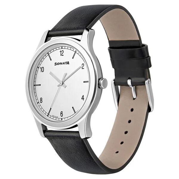 The code 7135SL01 refers to the Sonata Men’s Analog Watch with a Silver Dial and Black Leather Strap, a popular, affordable quartz watch from the Sonata Watches brand, a division of Titan. Key features include a round metal case, mineral glass, 30m water resistance,