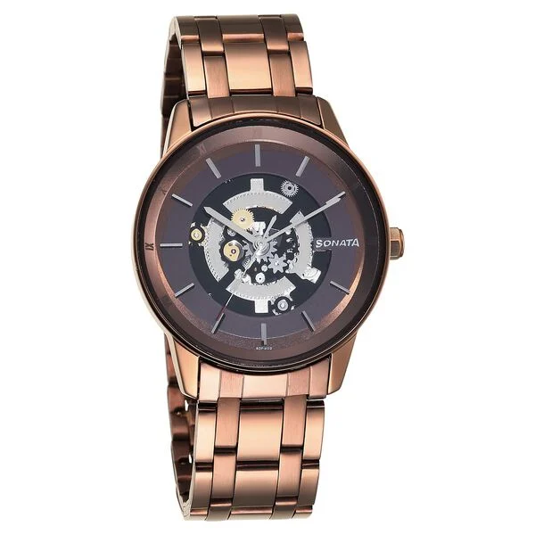 Sonata Unveil Quartz Analog Brown Dial Stainless Steel Strap Watch for Men