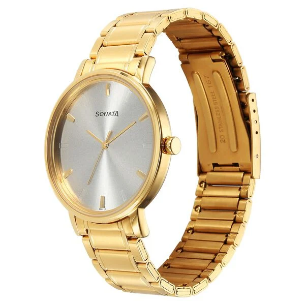 Sonata Utsav Quartz Analog Silver Dial Stainless Steel Strap Watch for Men
