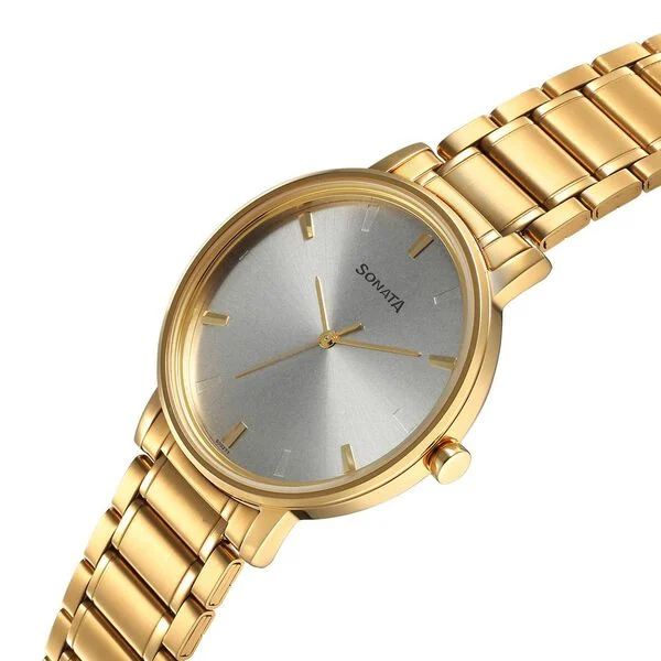 7131YM02 refers to the Sonata Utsav men’s analog watch, featuring a silver dial, gold-toned stainless steel strap, quartz movement, and 30m water resistance, known for its elegant, classic design suitable for both casual and formal wear