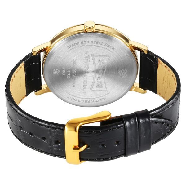 The Sonata Utsav Quartz Analog Silver Dial Watch for Men is a stylish and reliable timepiece designed for modern men. It features a classic silver dial with an analog display and precise quartz movement for accurate timekeeping. The watch is protected by durable mineral glass and comes in a round metal case with a slim thickness of 7.20 mm, giving it a sleek and comfortable fit. With a case length of 49.50 mm and width of 42.50 mm, it offers a bold yet elegant appearance. The black leather strap with a buckle lock mechanism adds a touch of sophistication, making it suitable for both formal and everyday wear. This watch is part of the Sonata Utsav collection and includes a 12-month warranty on the movement from the date of purchase, ensuring quality and peace of mind.