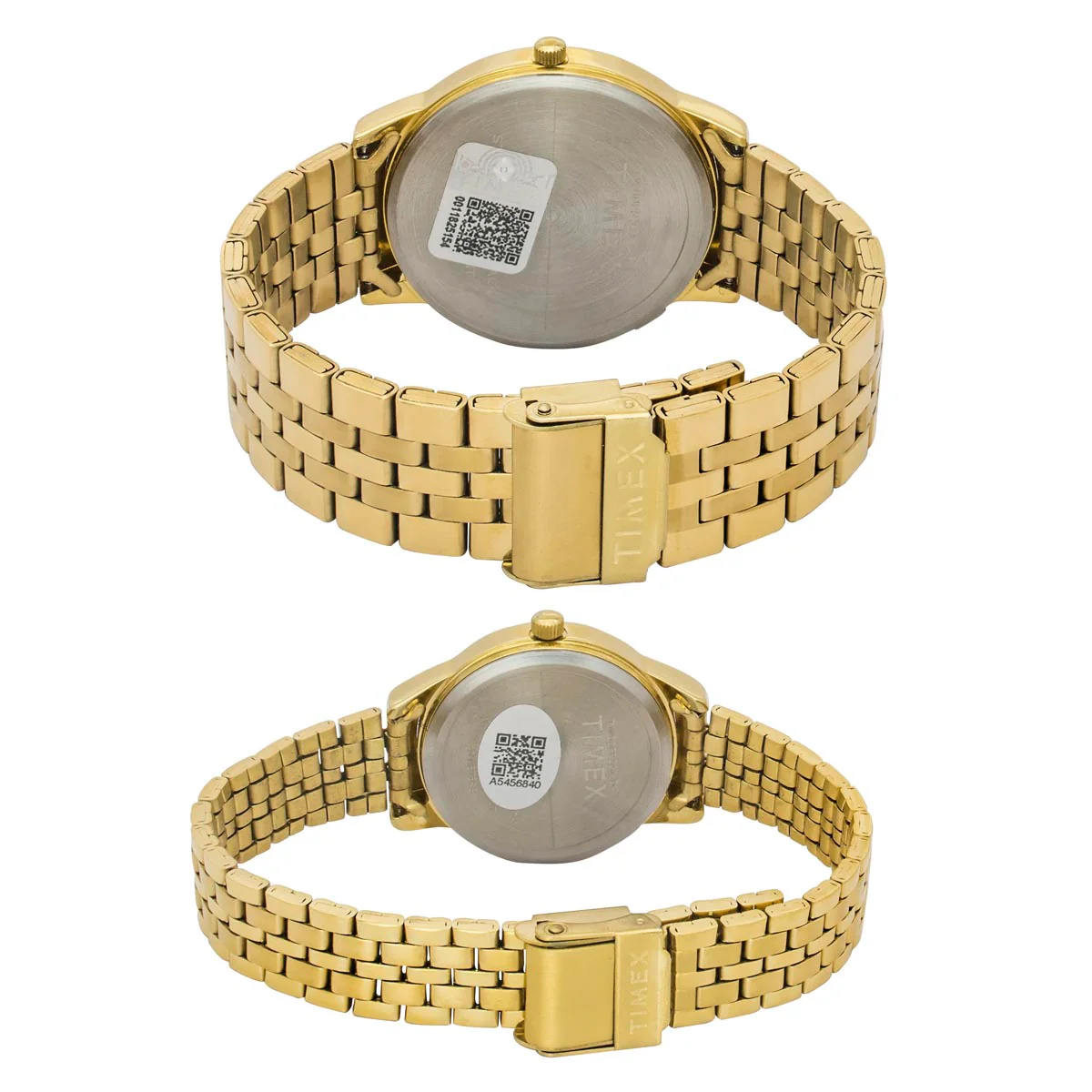 Experience timeless craftsmanship with the TIMEX Watch for Pair Analog, a true classic among water resistant watches for Couple Analog. Designed with a bold 43.00 x 32.00mm Green dial and a stylish Gold Stainless Steel this Pair’s watches model combines modern edge with vintage charm. Built for everyday wear, its Brass case ensures durability, while the 30 m water resistance makes it suitable for daily splashes and unexpected weather. The Analog watch for Couple runs on reliable Quartz movement, offering precise timekeeping that suits both casual outings and formal occasions. This watch for Couple ideal for those who appreciate a minimalist look in a classic watch for Couple making it a perfect choice for office, travel, or daily commutes. Whether you’re shopping a watch for Couple, a formal watch for Couple, or a timeless wrist watch for Pair, this model checks all the right boxes. It also makes a thoughtful gift, combining elegance with practicality.Its Comes With minimal maintenance and a one-year warranty (limited to manufacturing defects).