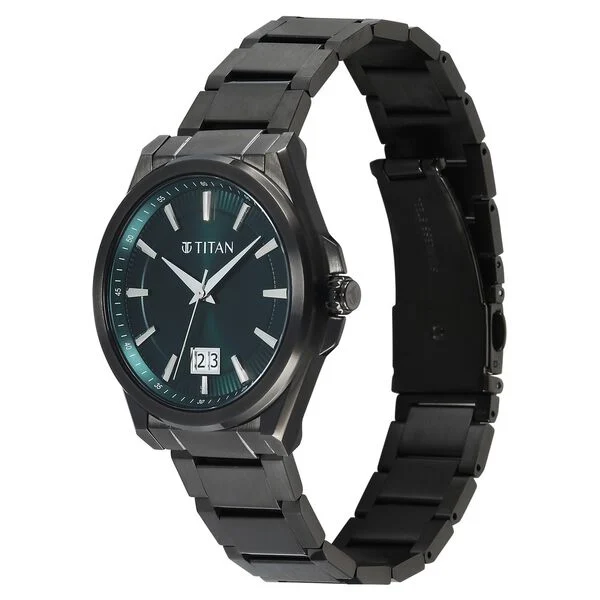 Titan Classique Big Date Analog with Green Dial Dark Gun Stainless Steel Strap Watch for Men